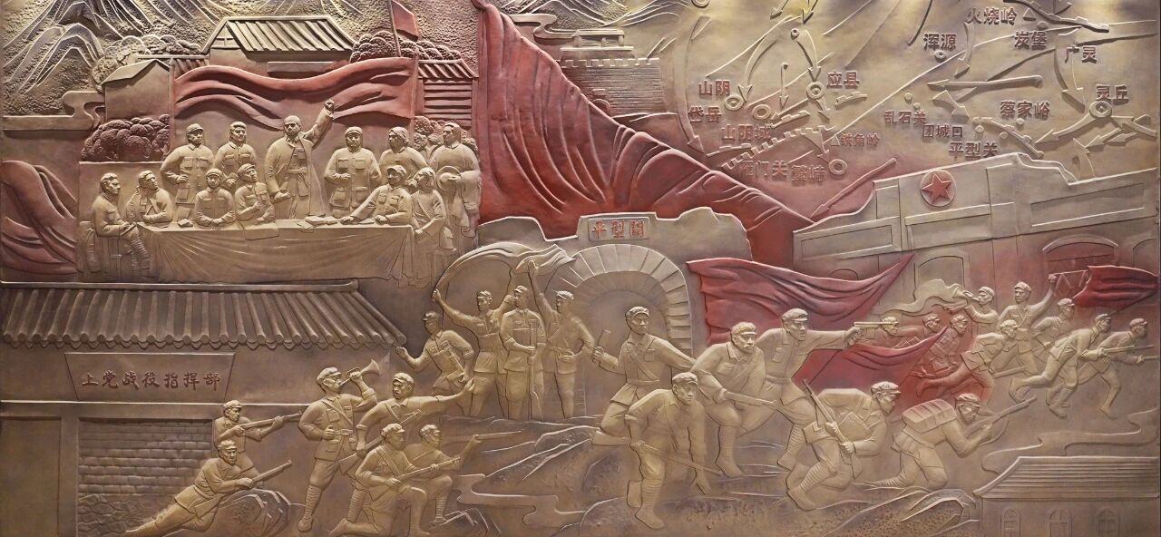 近代的烽火岁月中,三晋大地见证了无数热血故事,孕育出独树一帜的红色文化。酒店会议区域的锻铜浮雕,生动重现上党战役、太原会战、平型关大捷等峥嵘历史,结合声光电投影技术,打造动人心魄的沉浸式情境,再现浴血奋战与坚强不屈。对面墙上,山西百年党史的重要节点清晰陈列,为那段风云激荡的岁月留下深刻的时代注脚。这里不仅仅是高端商务空间,更成为触动心灵的红色教育课堂。