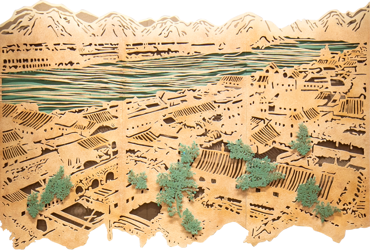 推光漆作品:左侧《万里茶路》;右侧《锦绣晋境》