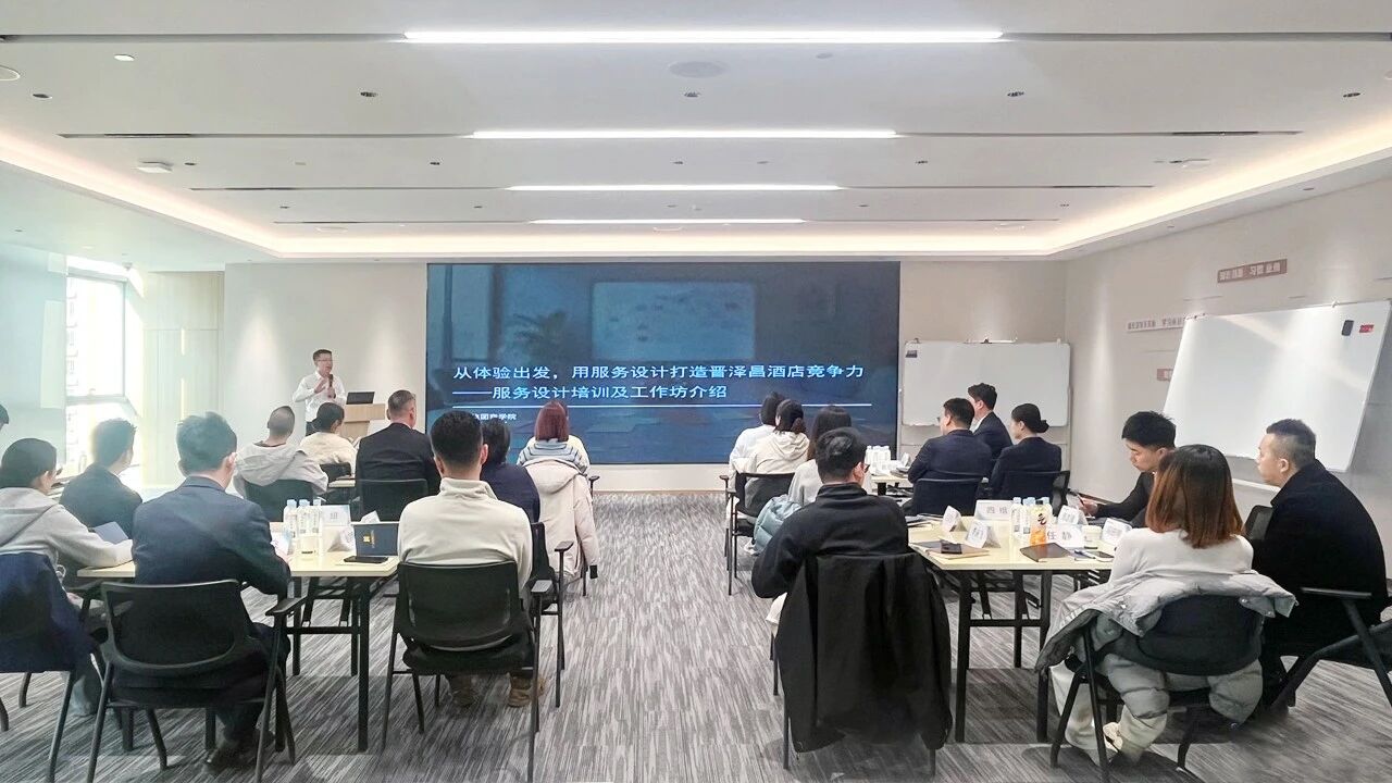 1月20日,鑫宇泰集团商学院“晋泽昌文旅酒店服务设计工作坊”首期导入课开讲,商学院院长修凤涛担任主讲。