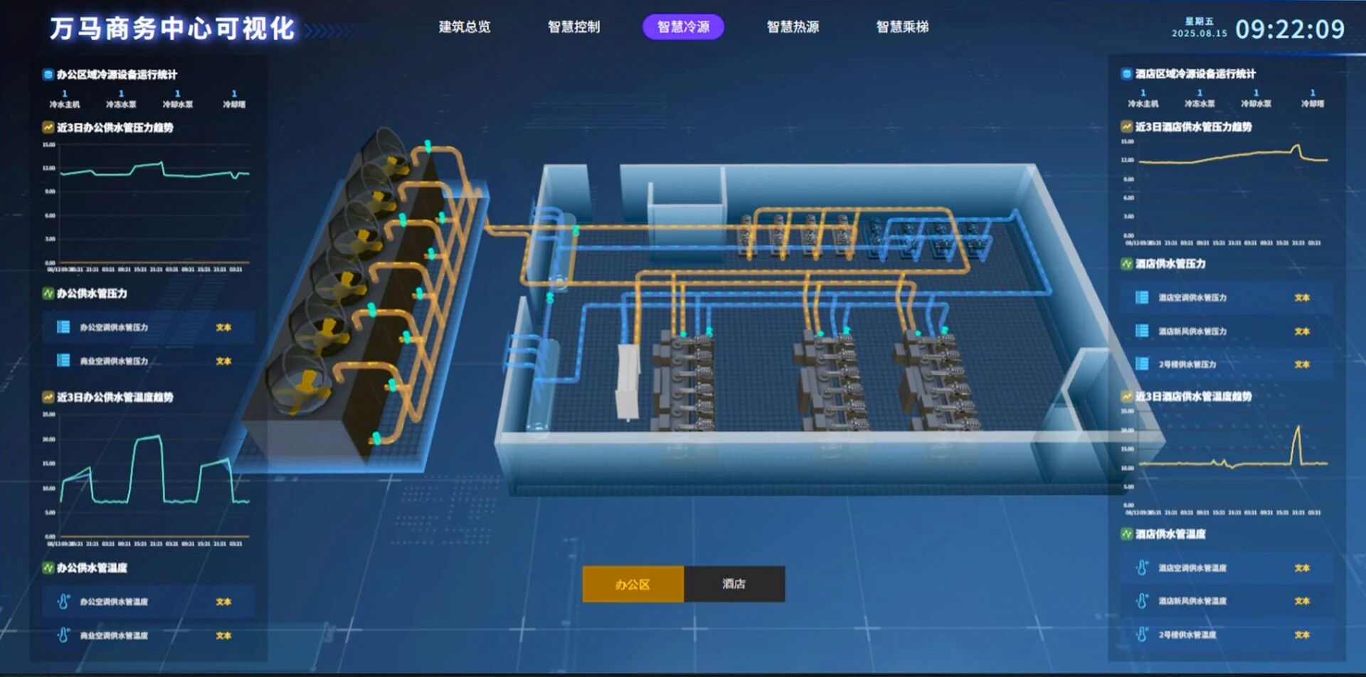 在万马商务中心智慧中枢,一面数字巨屏正实时映射着建筑的“生命脉络”。超过1.5万个物理设备、2.5万个逻辑点位的实时状态、环境参数、安防动态尽收眼底。这不仅是建筑的“数字仪表盘”,更是驱动其高效运行的智能决策引擎——IBMS集成管理平台。它正在重新定义高端商业空间的运营规则,让建筑拥有了智慧的“大脑”与敏锐的“感官”。
