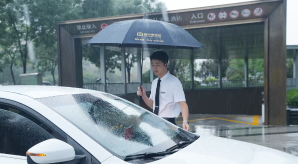 工程师傅卷起裤腿踏入积水,疏通被落叶堵塞的排水口;秩序员在风中引导车辆,制服湿透仍身姿笔挺。雨声渐歇时,保洁团队已冲洗台阶泥沙,设备箱擦得映出云影,路面积水倒映出带笑的脸庞。