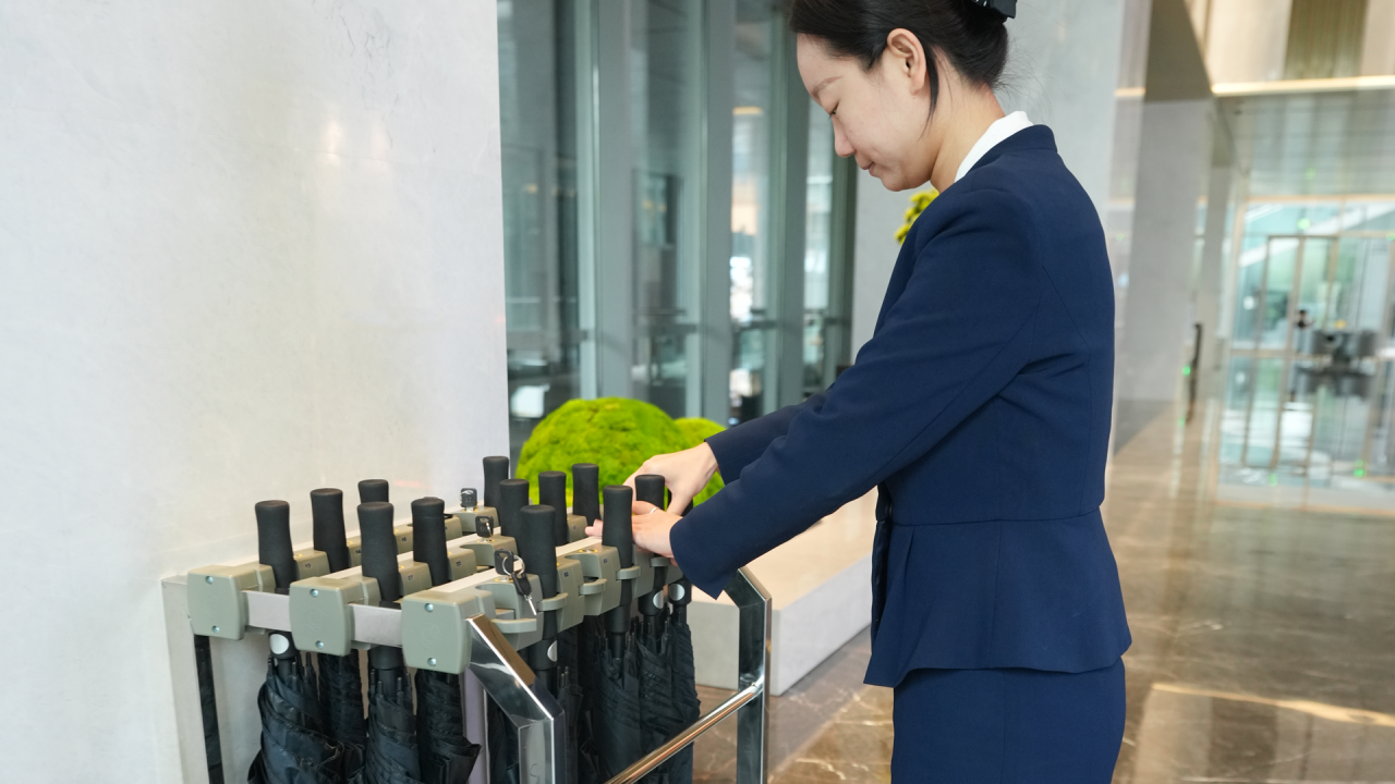 前台客服小姐姐的笑颜是阴霾里的晴空。“需要伞套吗?”她轻推伞套机,为滴水的伞披上外衣。若您临时外出未带伞,她会小跑递来宽大的雨伞:“先用着,回来还我就好。”一柄伞撑开的不只是晴空,更是“被记得”的暖意。